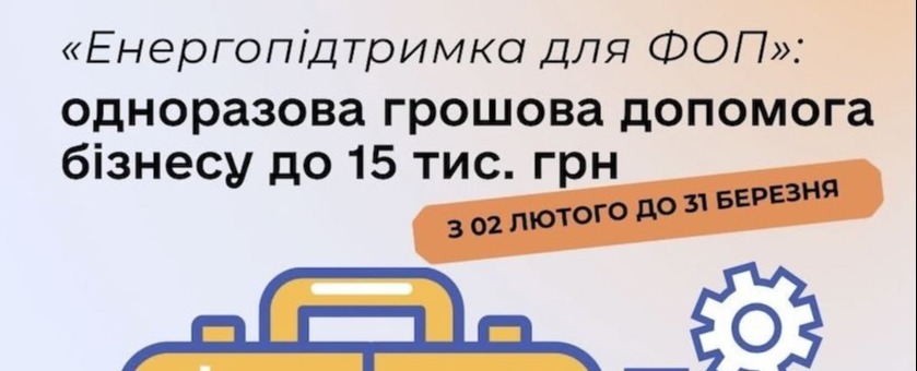 «Енергопідтримка для ФОП»: отримайте до 15 000 гривень безповоротної фінансової підтримки