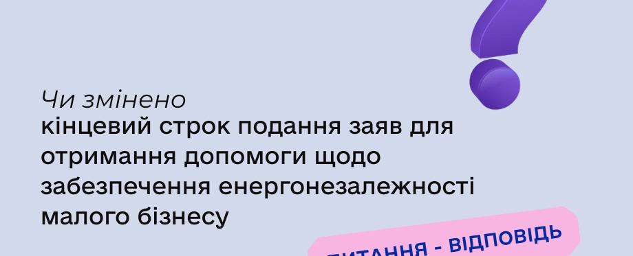 Чи змінено кінцевий строк подання заяв для отримання допомоги щодо забезпечення енергонезалежності малого бізнесу?