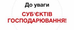 ДО УВАГИ СУБ'ЄКТІВ ПІДПРИЄМНИЦТВА